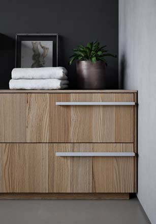 ♦ Dans la collection Sense, possibilité de plan vasque en Fenix NTM, un matériau innovant qui, grâce aux nanotechnologies, propose une surface au toucher velouté très agréable, y compris l’intérieur de la vasque. Anti-empreintes, le Fenix NTM permet des couleurs mates très profondes.