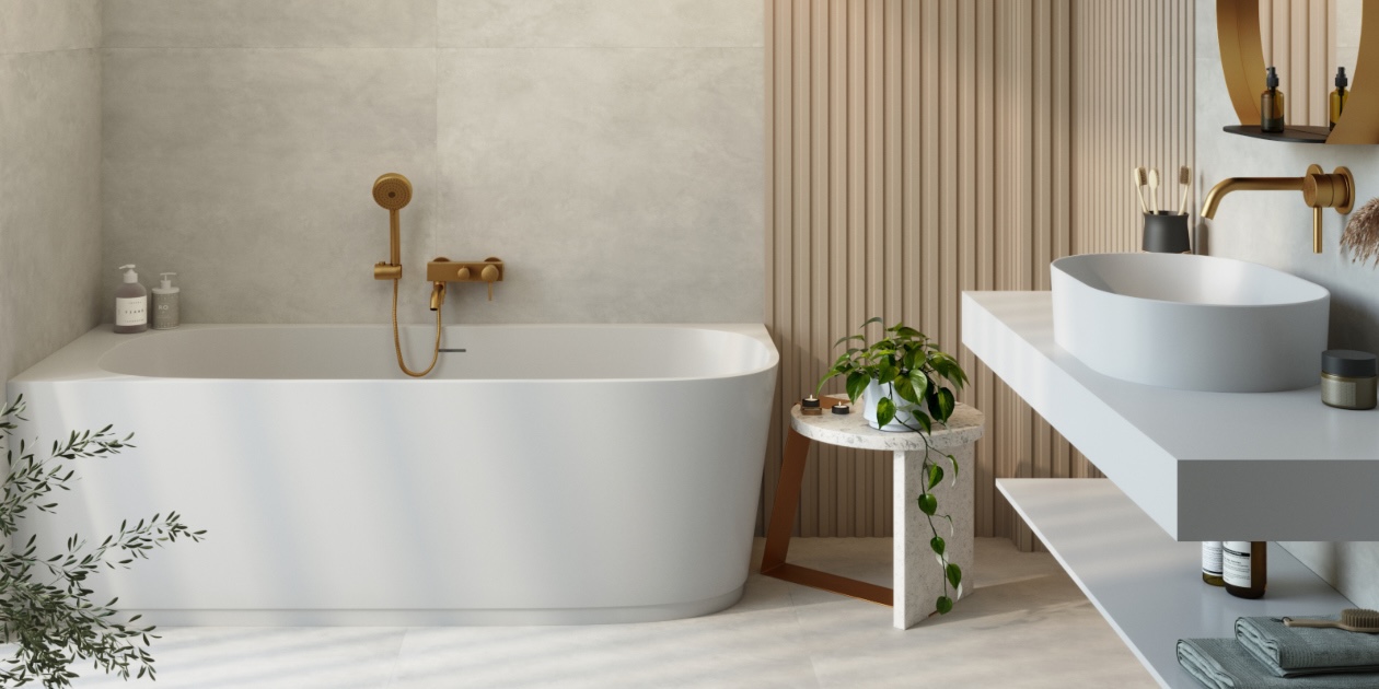 Personnalisable grâce à un large choix de couleurs et gain de place de par ses dimensions, la baignoire semi-îlot en solid surface Bay fait son entrée au catalogue de Quare Design.