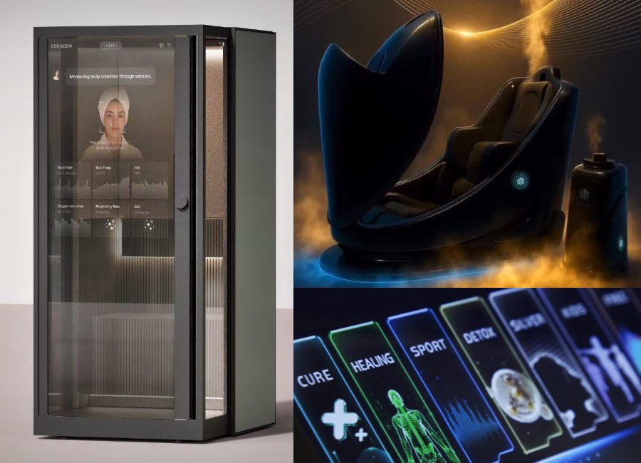 La promesse du bien-être évolue, ce qui devrait faire bouger les lignes de l’hydrothérapie, de la balnéo, du spa… Pour nous mettre sur la piste de ce qui nous attend, les exemples commencent à affluer. Le disruptif Home Therapy Booth 2.0 avec Coach Mental AI de Ceragem (en photo ci-contre), salué par un Award de l’innovation (CES 2026 Honoree/catégories Artificial Intelligence et Smart Home), prend la forme d’une cabine (et pourquoi pas de douche ?) à visée régénératrice. Dans dans cet espace adaptif, en fonction des bio-données de l’utilisateur (respiration, fréquence cardiaque, température cutanée…), l’IA lui crée une plage réparatrice, adaptant température, oxygène, lumière, son, arôme, méditation visuelle… Tel un cocon ne imant déjà plus avec science-fiction (en précommande, 29 999 00 $), le caisson de vapeur Body Jet du coréen U-Mine (en photo ci-contre), se distingue aussi par ses programmes adaptatifs (Cure, Sport, Healing, Detox, Silver, Kids…) et dépasse la relaxation passive, ciblant la circulation, le métabolisme, la récupération musculaire (…) tandis que la capsule de régénération cognitive Reconcept (France), qui annonce combiner zéro gravité, thérapie fréquentielle et neurosciences, déploie un panel de « séances guidées pour apaiser le système nerveux autonome, améliorer l’endormissement, la gestion des émotions, l’attention » (…).