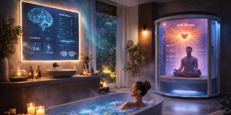 Ainsi, se rapprochant de la prévention santé sans être médicalisé, le wellness du futur se positionne davantage comme une aide à l’individu, lui permettant de mieux fonctionner par la mise en place de pratiques durables, basées sur scénarios d’usage personnalisés qui vont au-delà du confort et du lâcher-prise. Grâce aux données physiologiques et autres recommandations comportementales formulées en permanence par l’IA, le bien-être devient alors moins passif, plus conscient. Associé à un maximum de routines, du réveil à la décompression après une journée de travail, en passant par la préparation à un sommeil réparateur, le bien-être s’installe dans le quotidien. Comme pour la santé, l’utilisateur dispose de clés pour comprendre et piloter sur-mesure son propre bien-être, à l’instar du Longevity Mirror de NuraLogix qui calcule le stress mental.