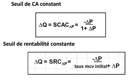 ♦ le SRC ou seuil de rentabilité constante : cet indicateur exprime la variation de volume nécessaire pour conserver la marge quand le prix évolue.
