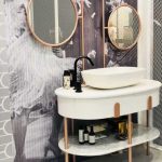 Surdimensionné, travaillé comme une œuvre d’art, éclairé, accessoirisé, décoré…, le miroir occupe l’espace au-dessus, mais aussi au-delà du point d’eau, avec lequel il fait parfois corps.