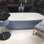 Les industriels italiens nous ont habitués aux couleurs puissantes mais neutres, proposées sur les vasques essentiellement : des beiges, gris, verts… Les vraies couleurs arrivent : roses tendres et bleus pastel (sans doute l’effet Pantone, qui a élevé ces deux tons au rang de couleurs de l’année 2016), mais aussi des jaunes paille (Cielo), des bleus lagon (Arlex Italia)… Toutes ces couleurs habillent la céramique, mais pas seulement : Bette a présenté deux (décoiffantes) baignoires îlots en acier émaillé, l’une rose (fuchsia) et l’autre verte (pomme), toutes deux insérées dans un écrin de tissu imperméable et outdoor signé par un spécialiste allemand.
