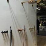 Mais la couleur se pratique aussi en petites touches : sur les flexibles des douchettes (rouges, noirs, jaunes…) et sur les croisillons ou les manettes des robinetteries, voire sur les robinetteries elles-mêmes (Ametis Color de Graff, My Ring de Giulini…). Fantini lance ainsi une nouvelle série signée par Matteo Thun dont les croisillons ronds et plats sont en résine translucide colorée. Pour autant, la finition noir mat est acquise pour la robinetterie, qu’elle habille immédiatement de modernité. La finition « brass », autrement dit laiton, sorte de doré mat plutôt chic, est également dans l’air du temps.